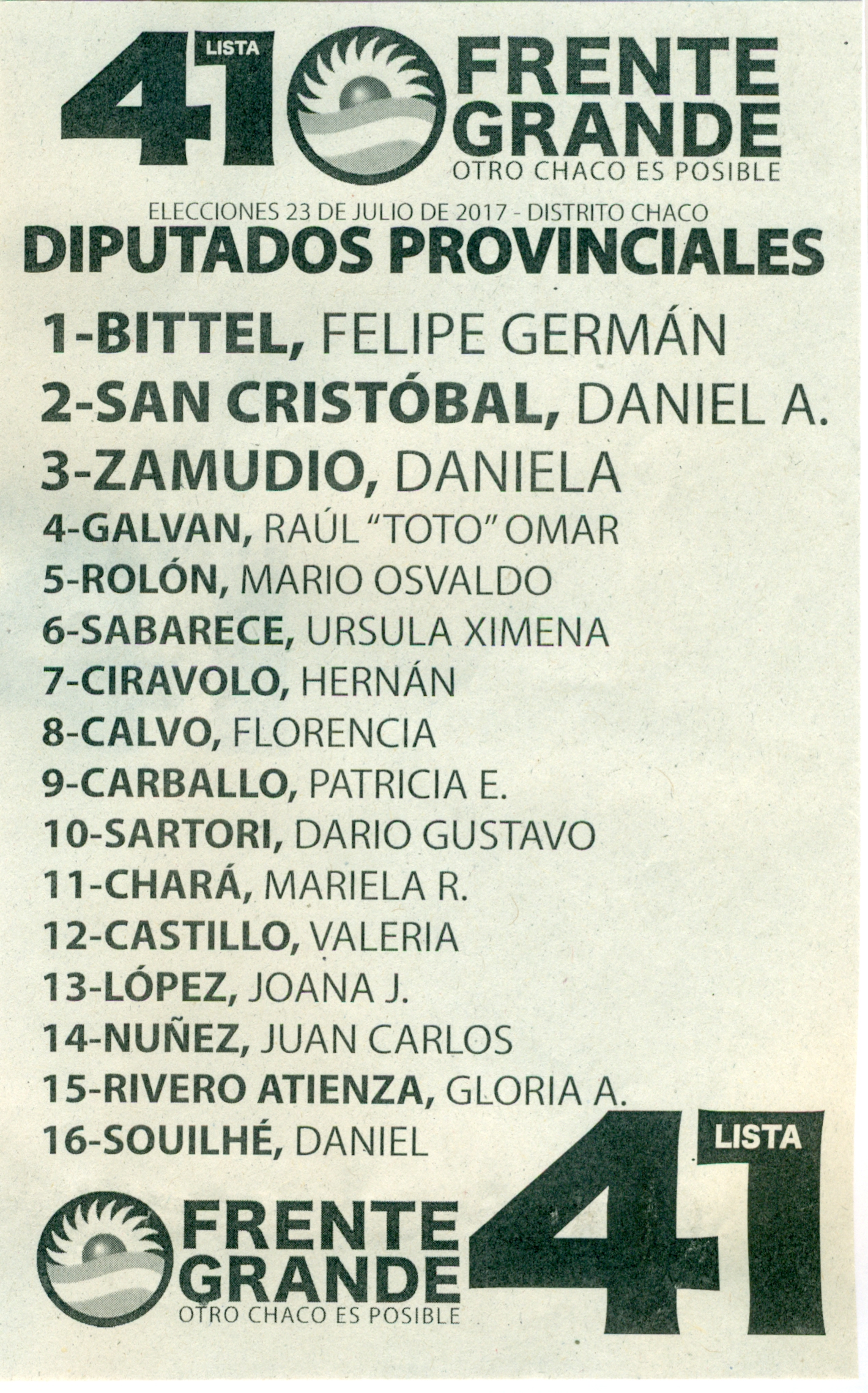 | 41 | PARTIDO FRENTE GRANDE | PARTIDO | ||