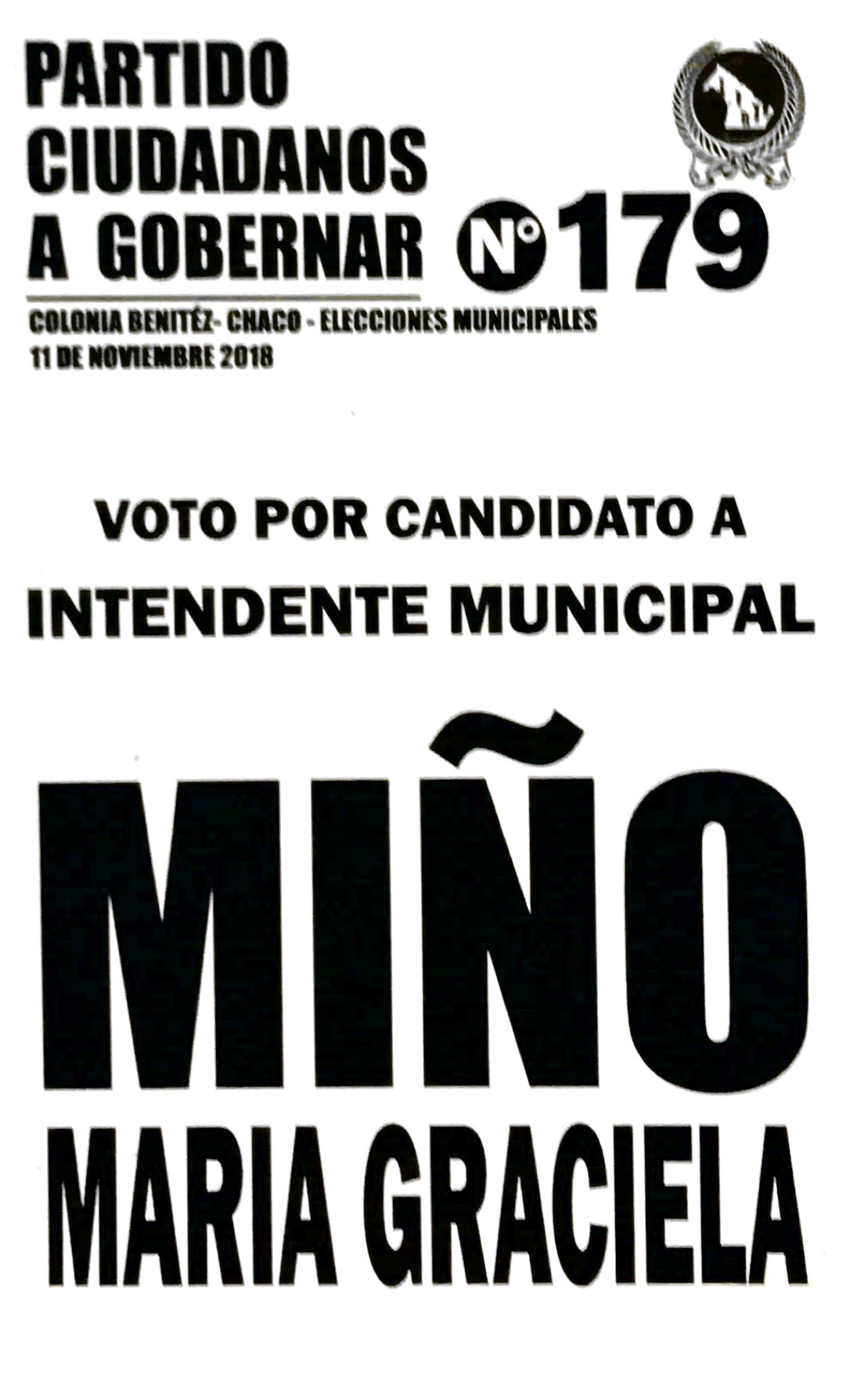 CIUDADANOS A GOBERNAR S/OFICIALIZACIÓN DE CANDIDATO COLONIA BENÍTEZ |